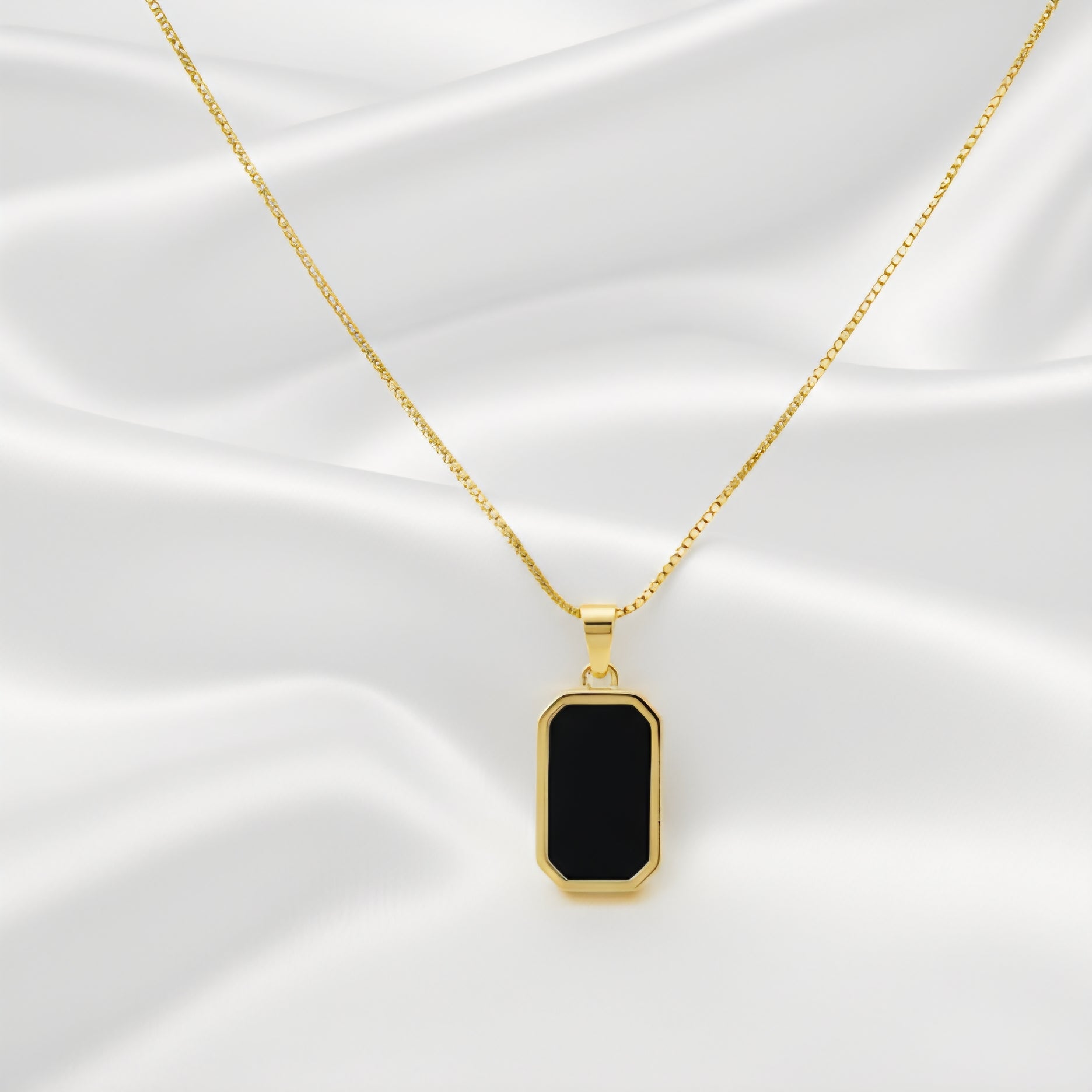 The Black Enamel Pendant features bold rectangular design. Designed for modern street-style fashion. Lightweight and comfortable. Adds edgy touch to casual outfits. Easy to style daily. A bold pendant necklace.